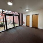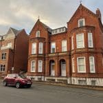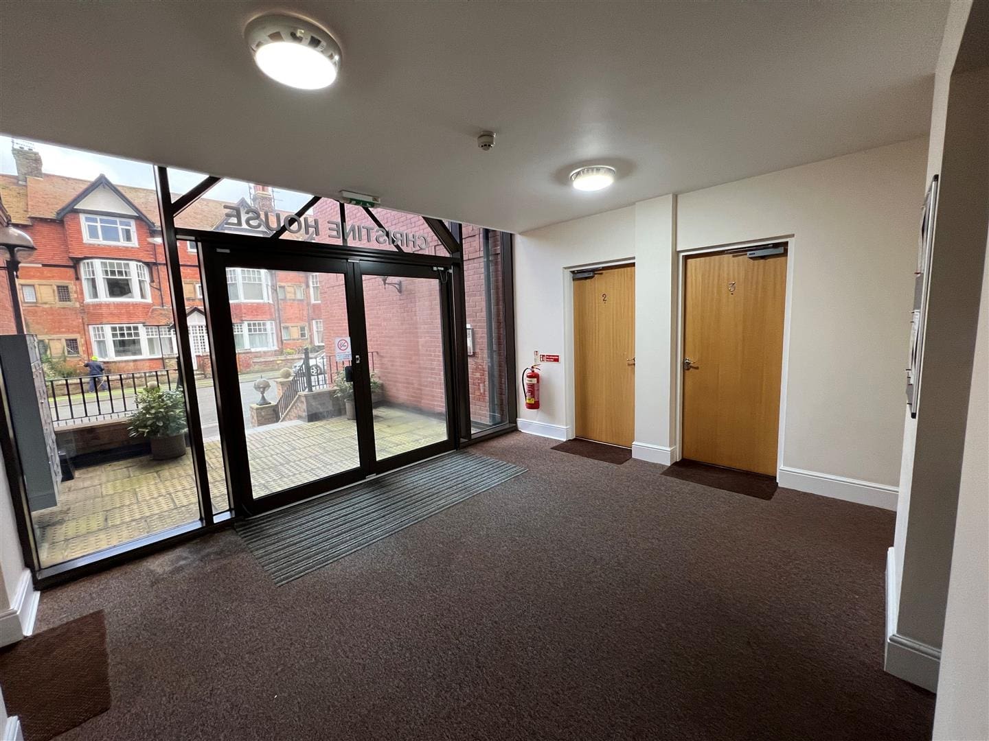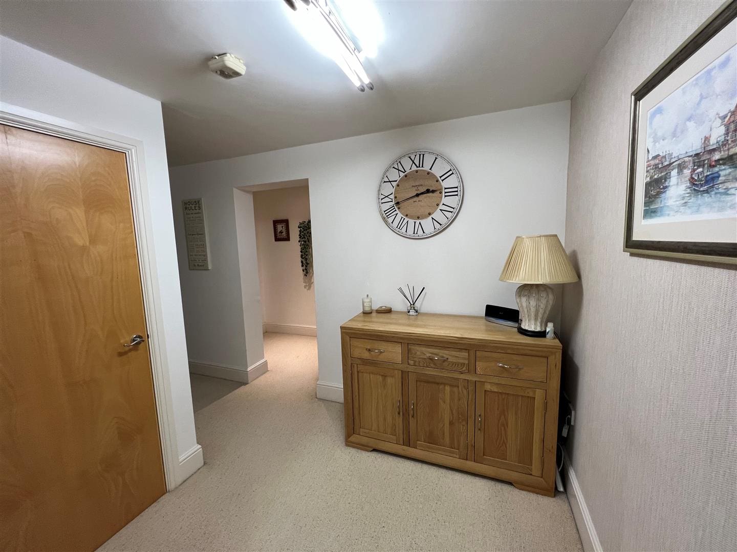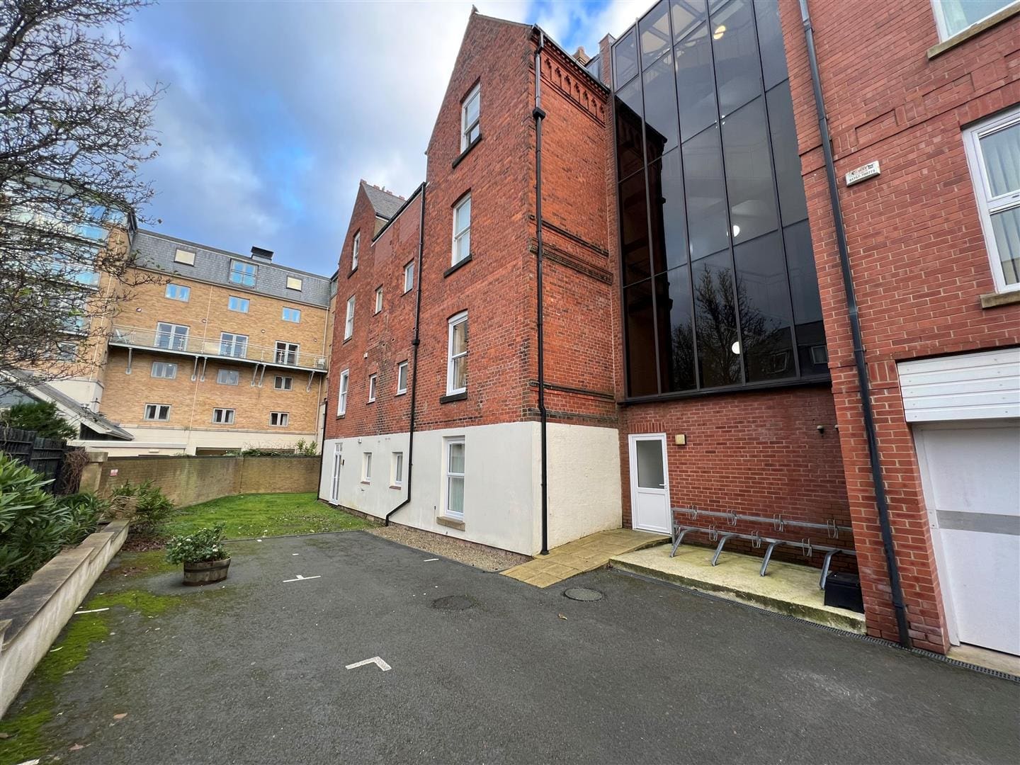 To the rear of the property there are designated parking spaces for residents. The space for this property is adjacent to the rear door of the building so it is easy to access the apartment from the car park. To the side there are communal lawned areas.