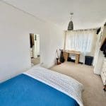Large bedroom area with overhead lights and large Upvc windows overlooking the front and rear of the property, the rear has a view of the valley behind. Smoke alarm on the ceiling, electric heater and carpet.