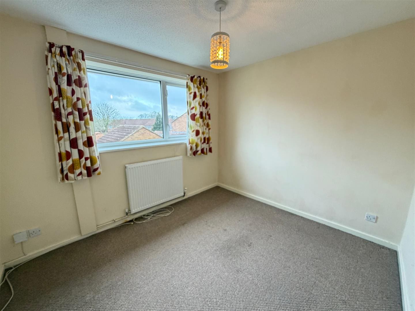with electric fire and surround, window and radiator