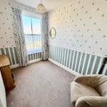 Double bedroom with window overlooking the front of the property and towards the North Bay. Overhead light, dado rail and radiator.