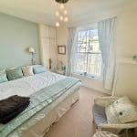 Double bedroom with window overlooking the North Bay, overhead light, radiator and built in storage.