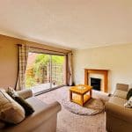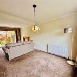 Dual aspect room with patio door giving access to the rear garden. Overhead light, feature fire with surround. Open aspect to