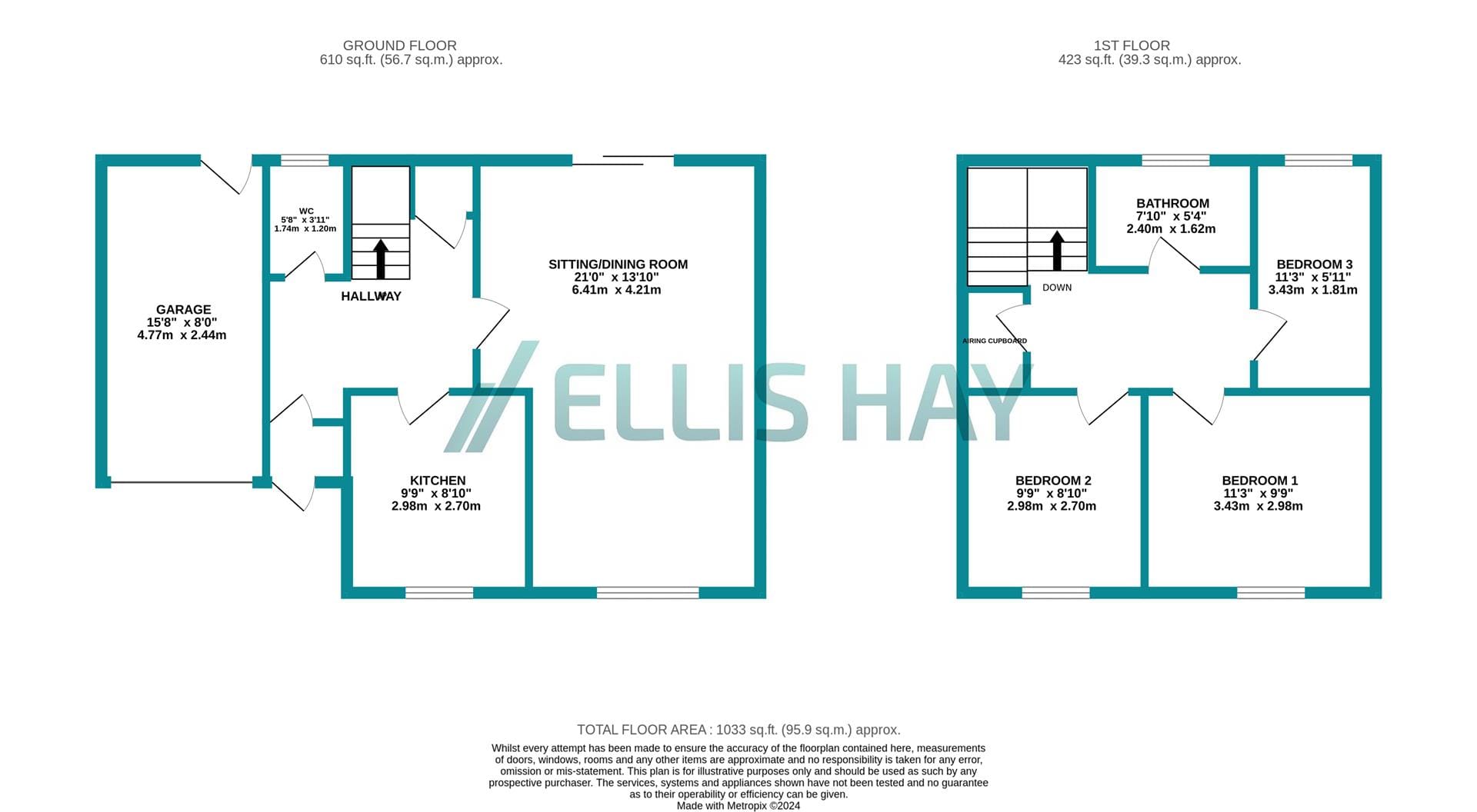 Airing cupboard housing modern boiler. Access to boarded loft.