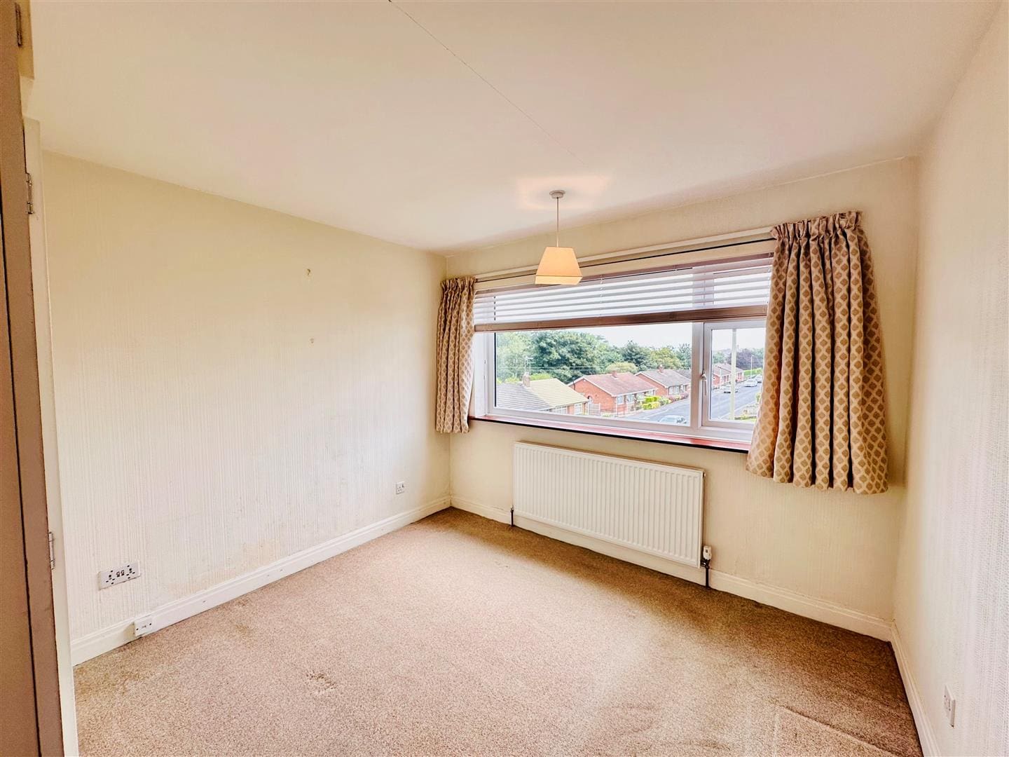 Window overlooking the front of the property. Overhead light and radiator.