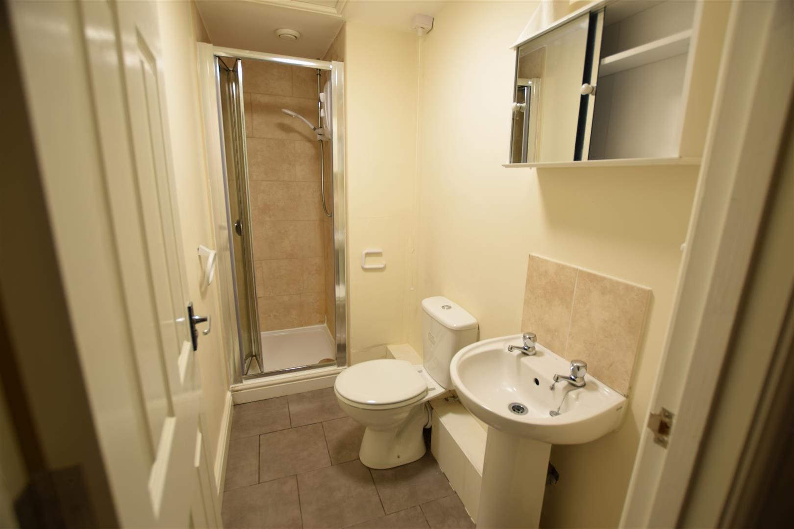 With basin, WC and shower enclosure with electric shower
