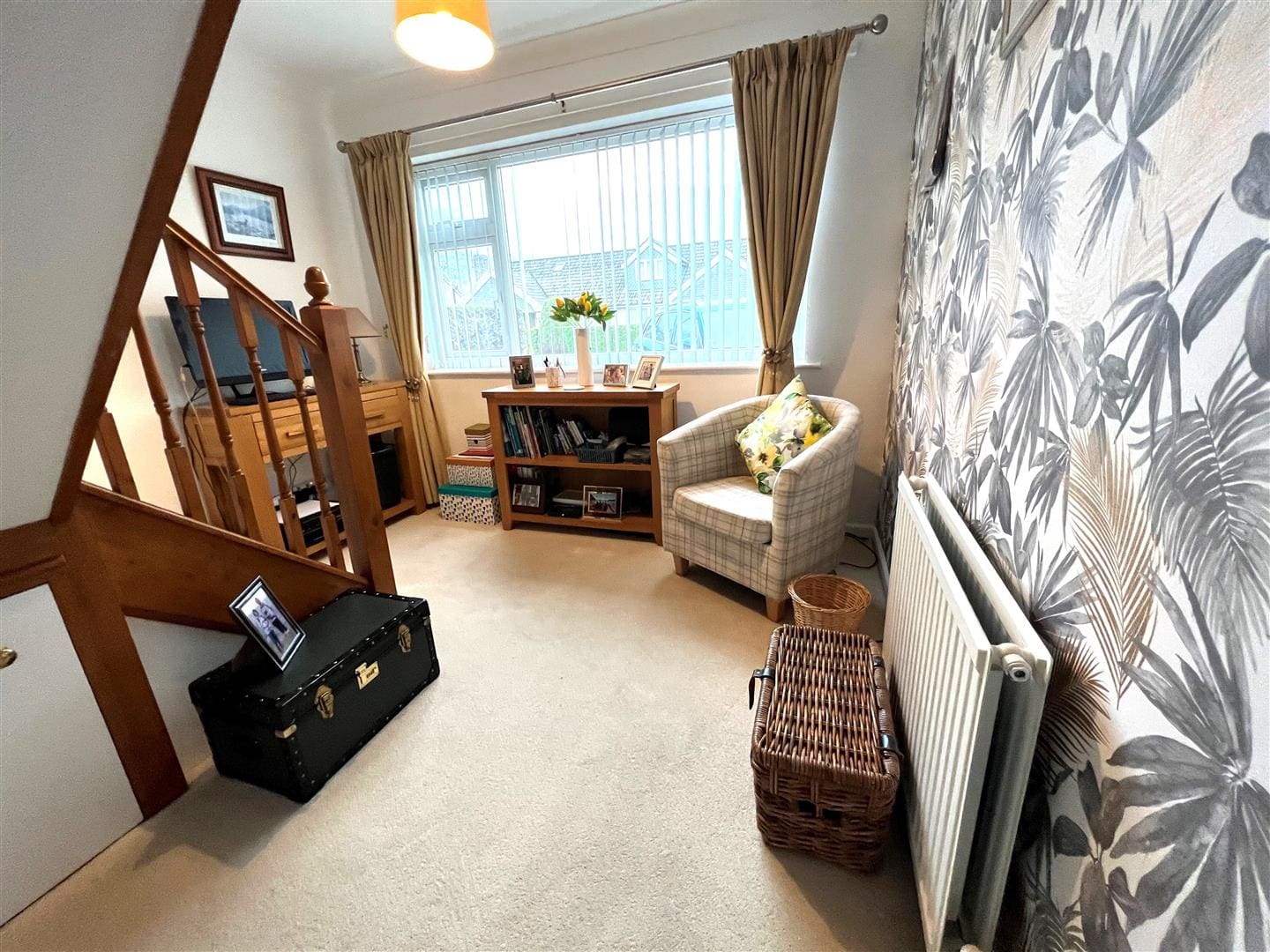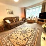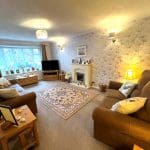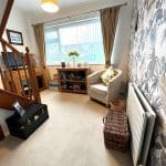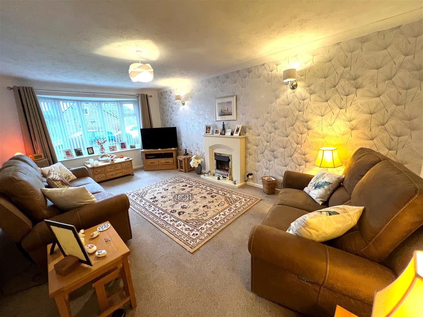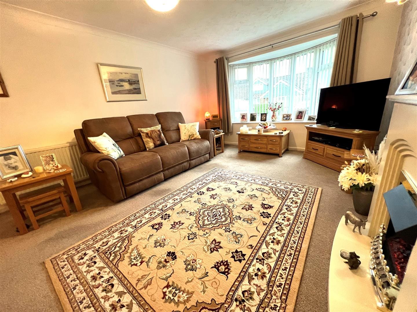 Located at the front of the house this good sized lounge has a large curved bay window overlooking the front garden. There is an electric fire in a stone surround, radiator and carpet .