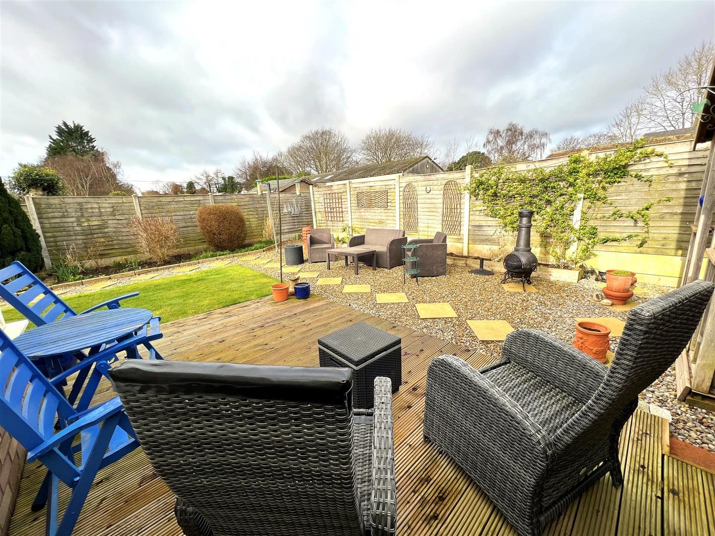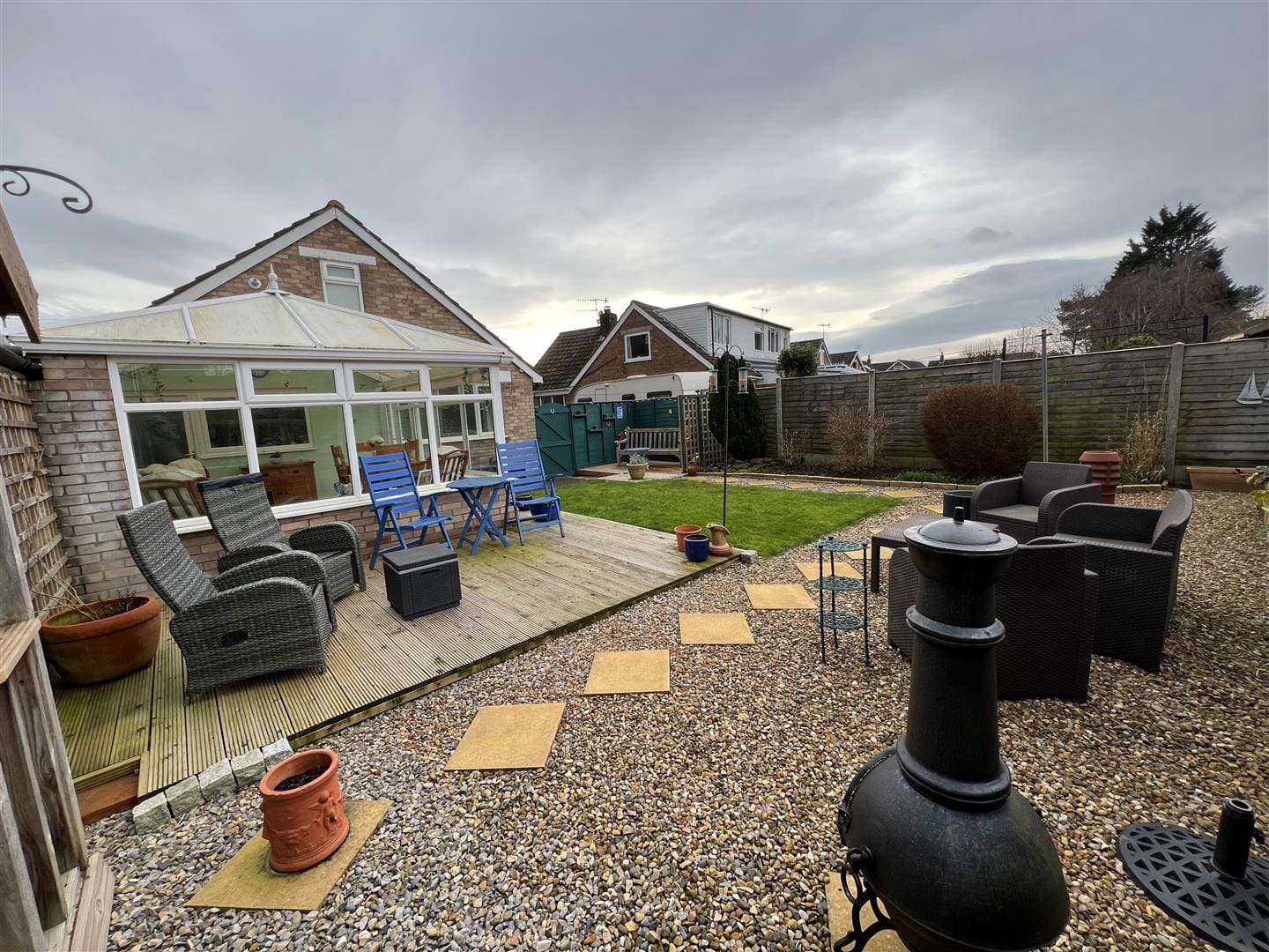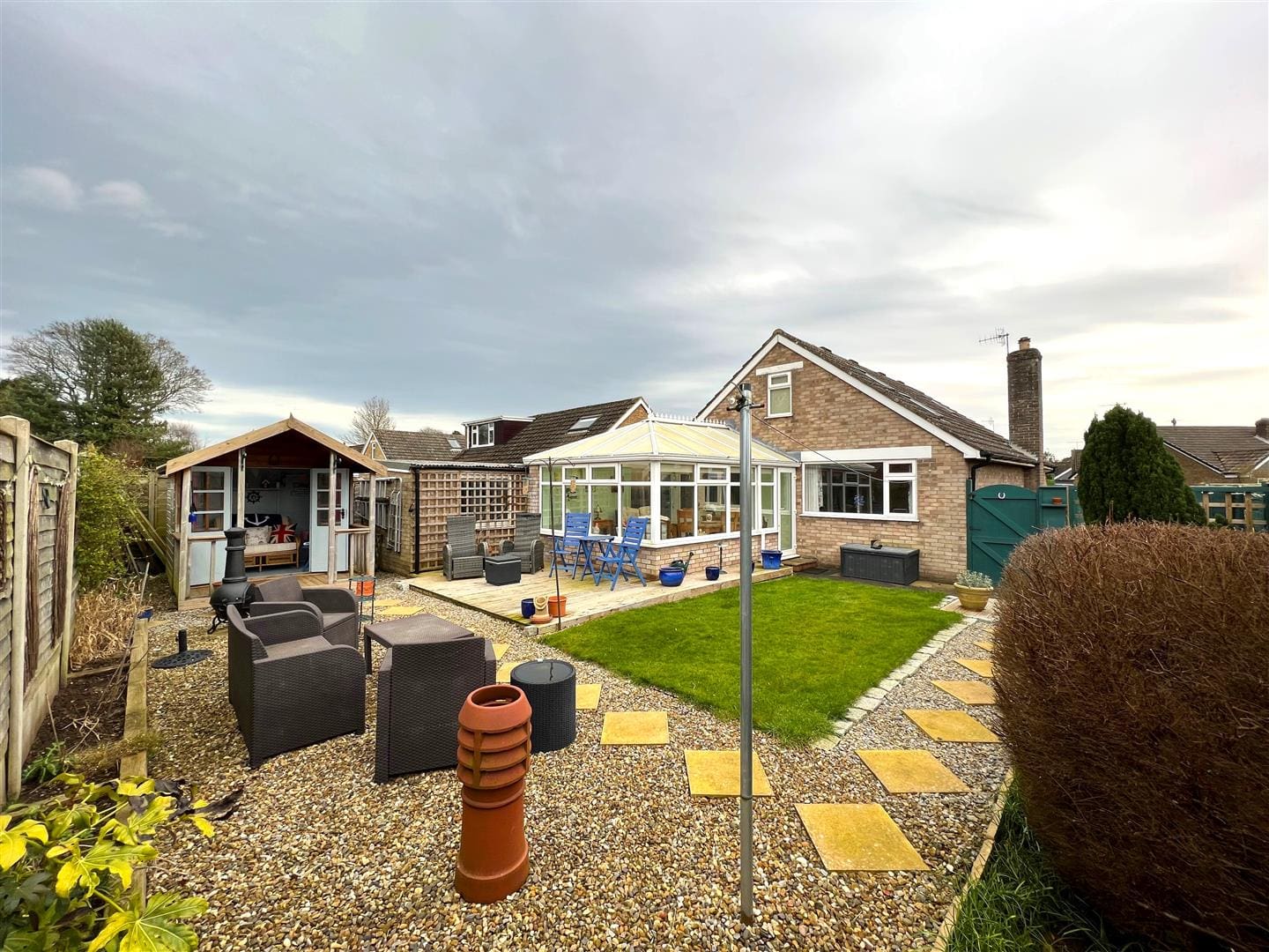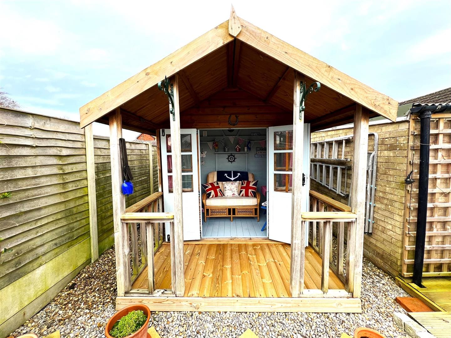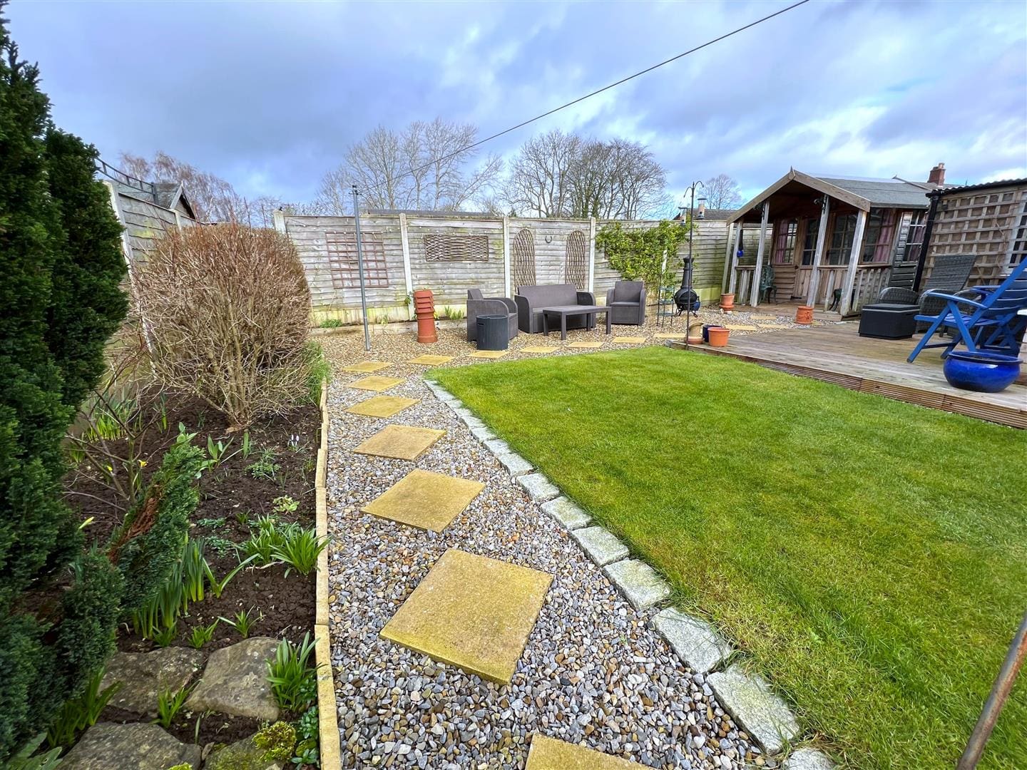 To the front of the property there is parking for two cars, on the driveway and also a small easily maintained lawn area . To the rear there is a good sized level garden area with decked seating areas, gravelled areas and a small amount of lawn. There is also a cabin/summerhouse which is ideal for the sunny days as a garden retreat.