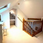 The dressing room is at the top of the staircase with a velux window and under eaves storage. There is a door leading from the dressing room into the master bedroom.