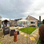 The large conservatory is at the rear of the property and overlooks the garden. The floor is vinyl laminate tile effect and there are also electric sockets. There are three UPVC doors in the conservatory - one to the garden , one to the side of the house towards the garage and one leading into the kitchen.