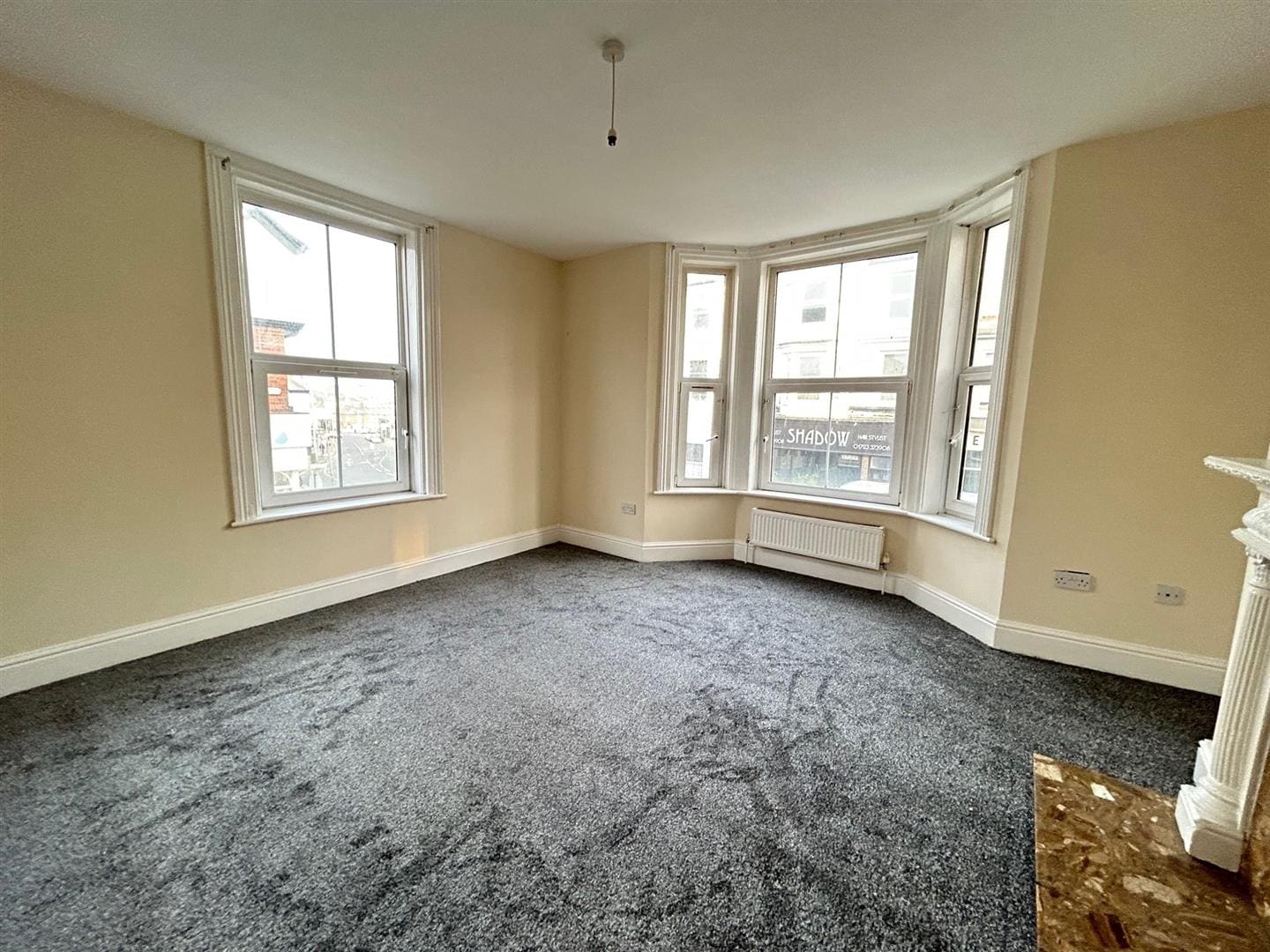 with bay window, decorative fire surround and radiators