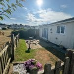 The accommodation includes an entrance hall, a light and airy lounge/diner with sliding doors opening onto the rear garden, a kitchen that enjoys an open sea view, adding to the appeal of the coastal setting, two double bedrooms and a three-piece bathroom suite, with electric heating throughout.