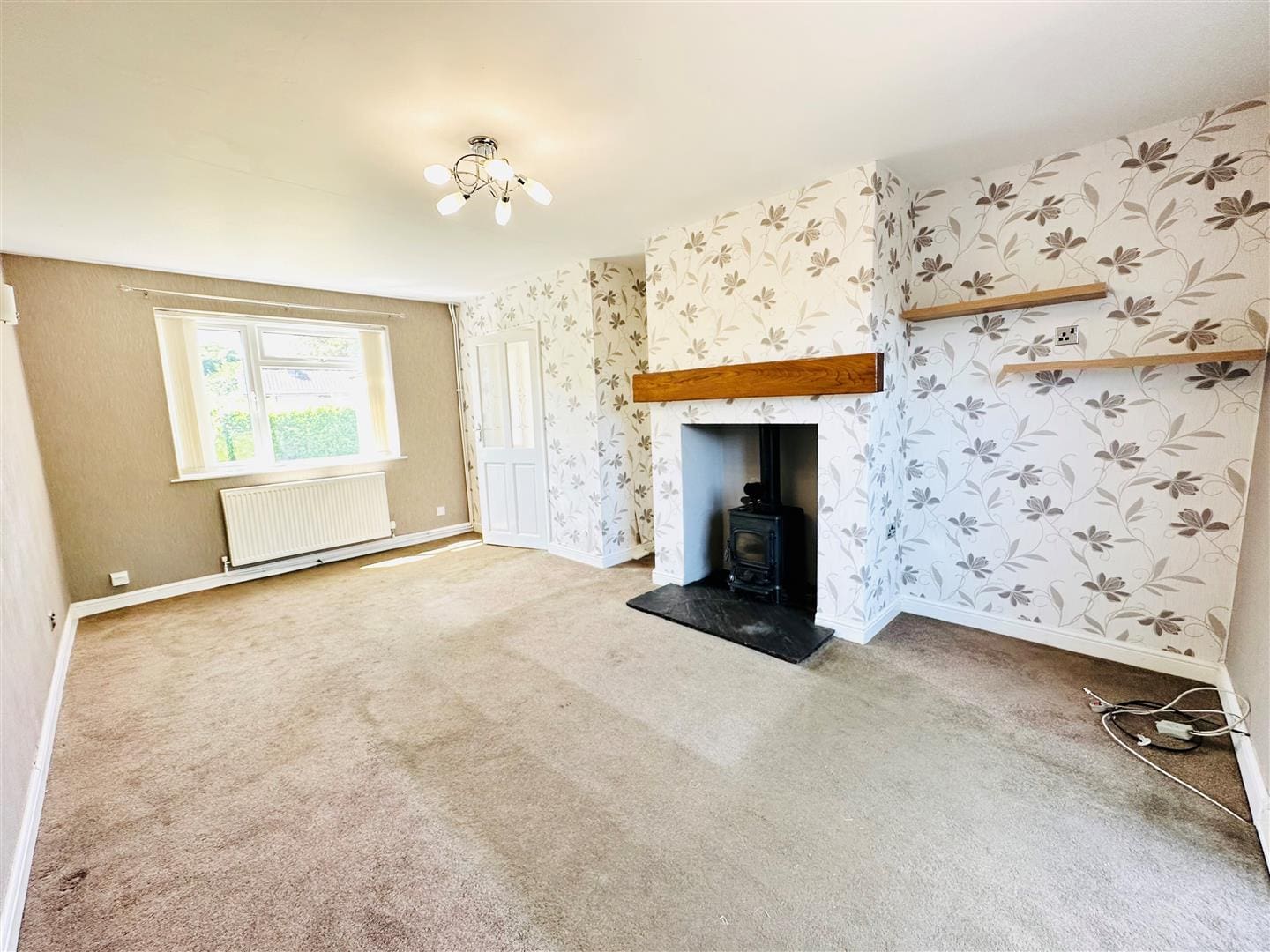 A good sized lounge with UPVC double glazed patio doors leading to the rear garden, a UPVC double glazed window to the front of the property, carpet, radiator and woodburning stove.
