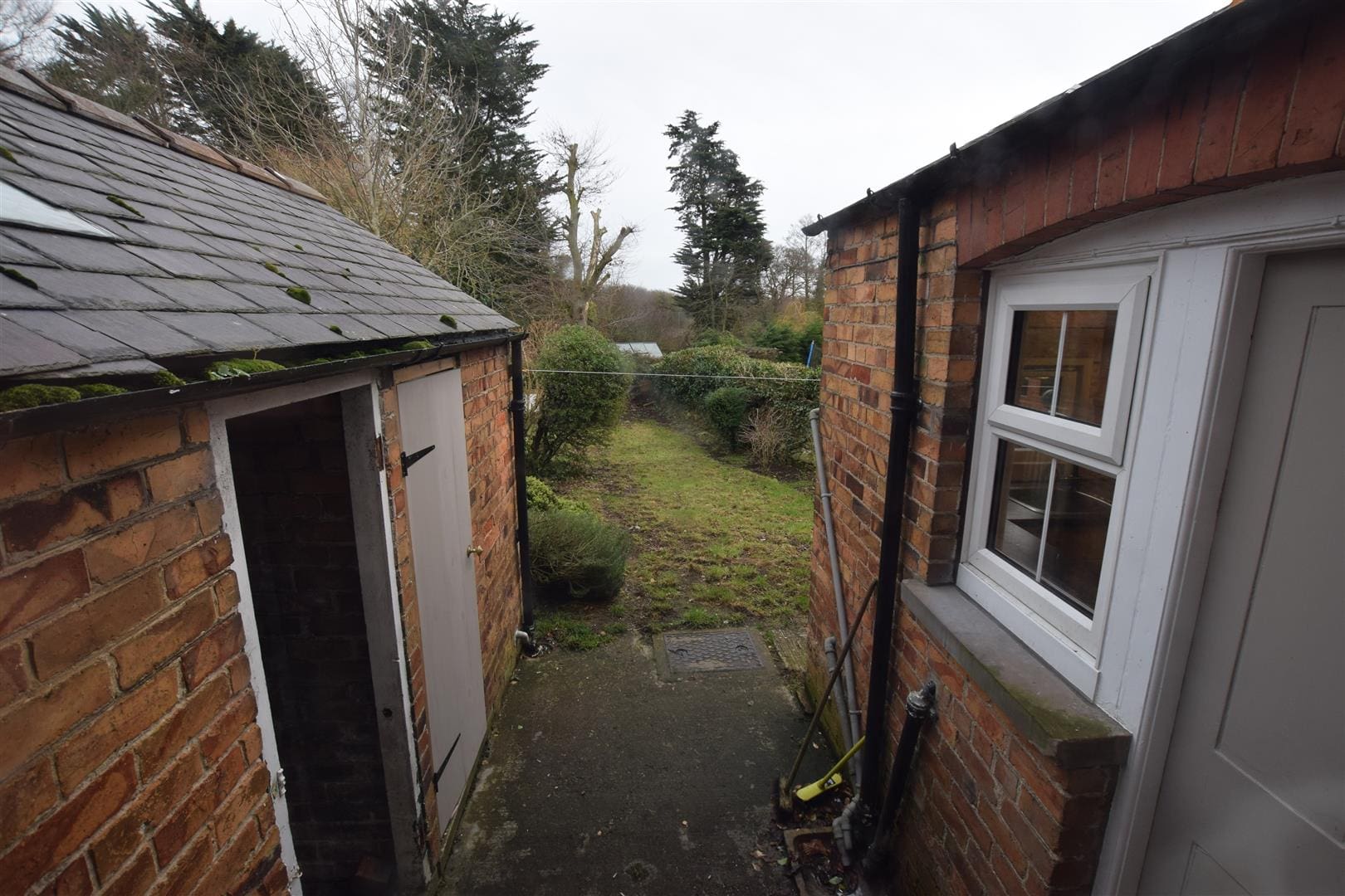 driveway and garage to the front and garden with outbuilding to the rear. The outbuilding has power and plumbing for washing machine