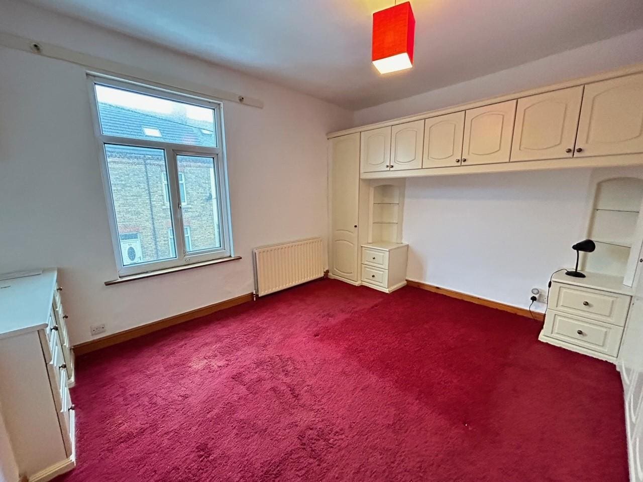 with fitted wardrobes, radiator and window