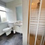 with shower cubicle with shower, WC, hand basin and extractor