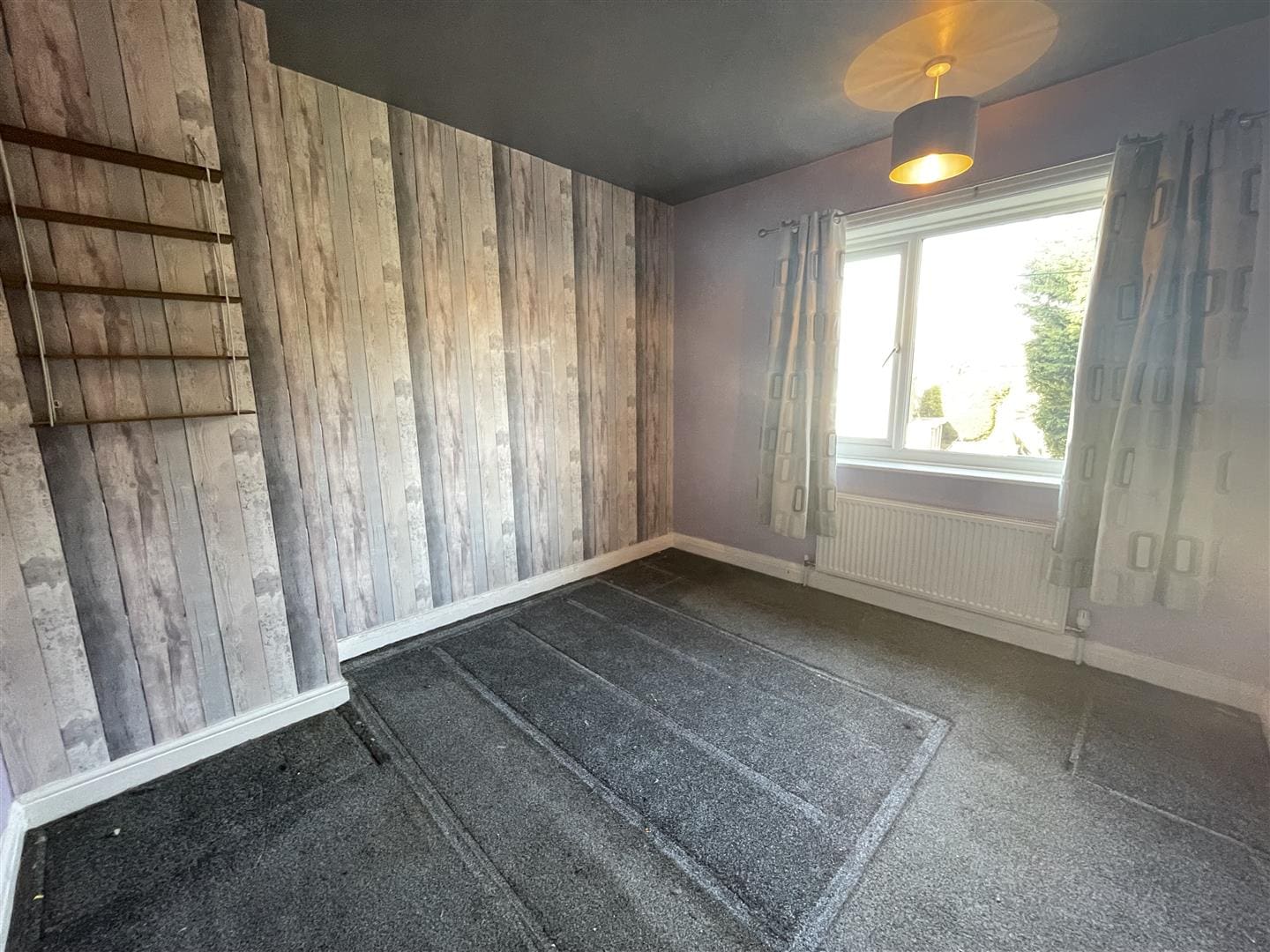 Rear facing UPVC window, overhead light and radiator,