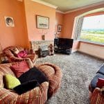 Front facing UPVC window, radiator, carpet and overhead light. Electric fire with brick feature fireplace.