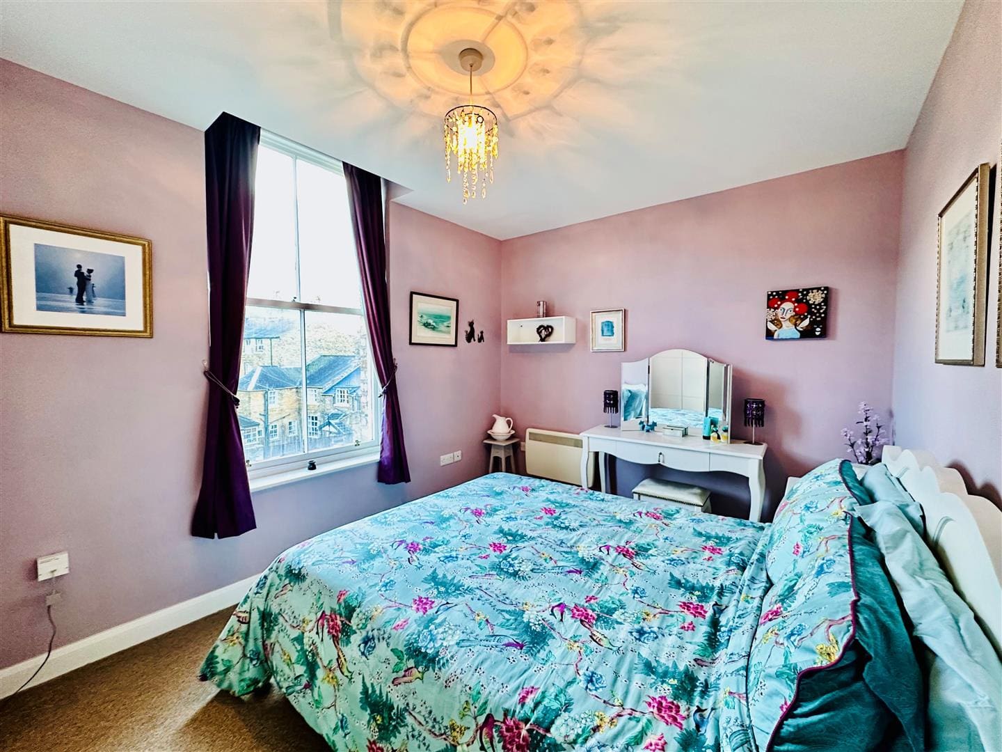 With front facing windows, overhead light, coving and electric heating.