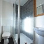 With 3-piece suite, shower over the bath with shower screen and radiator