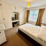 Rear facing UPVC window, built in wardrobes and dressing table, vanity sink, overhead lighting, radiator and carpeted throughout.