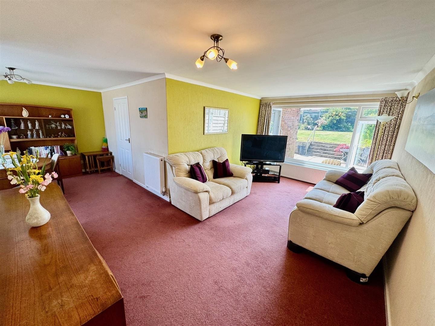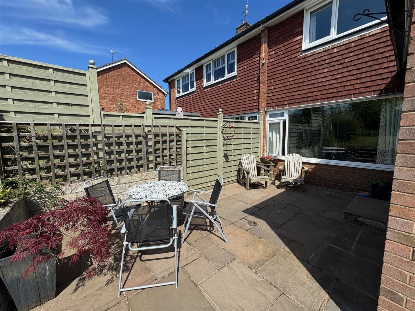 The property provides well-proportioned accommodation, including a front-facing lounge, modern kitchen, and a flexible ground floor room suitable for use as a family space, playroom, or home office. Upstairs are two double bedrooms, a single bedroom, and a family bathroom. Outside, the rear garden features a hard-landscaped patio and a raised lawn—ideal for outdoor dining and play. A driveway and garage offer off-street parking and storage.