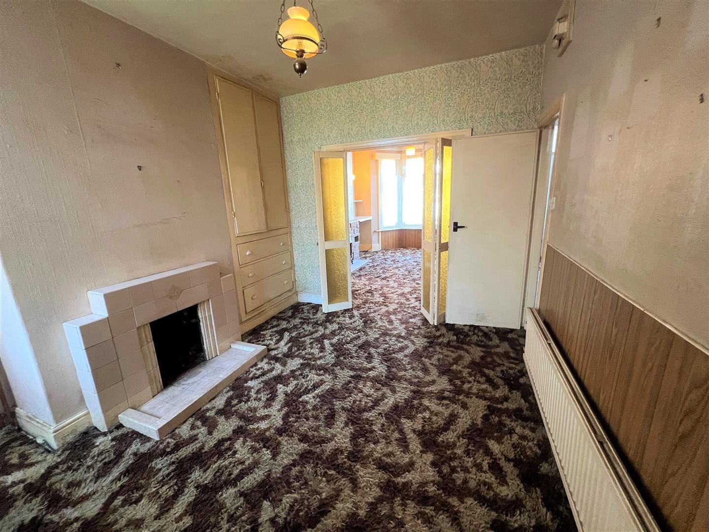 Situated at the rear of the house with an understairs cupboard, folding doors into the lounge, feature fireplace, fitted cupbaord into chimney breast, radiator and window to the rear yard.
