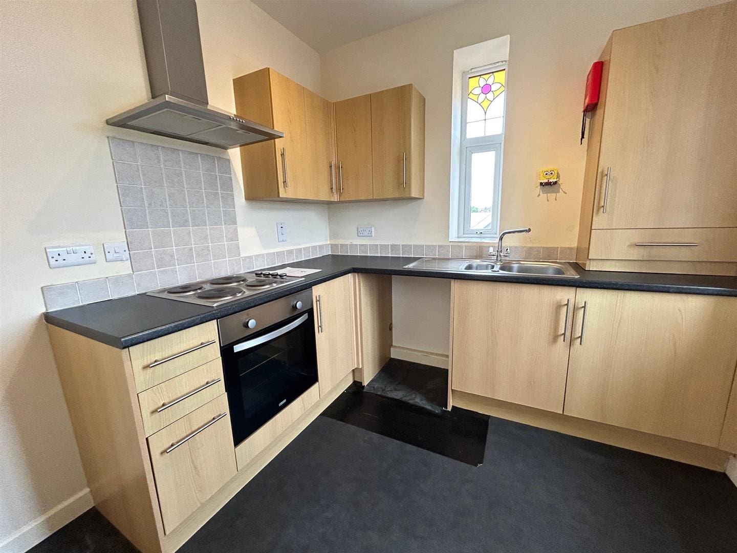 with a range of base of base and wall units, integrated oven and hob with extractor over, stainless steel sink unit and upstand, space for washing machine and fridge/freezer and underfloor heating
